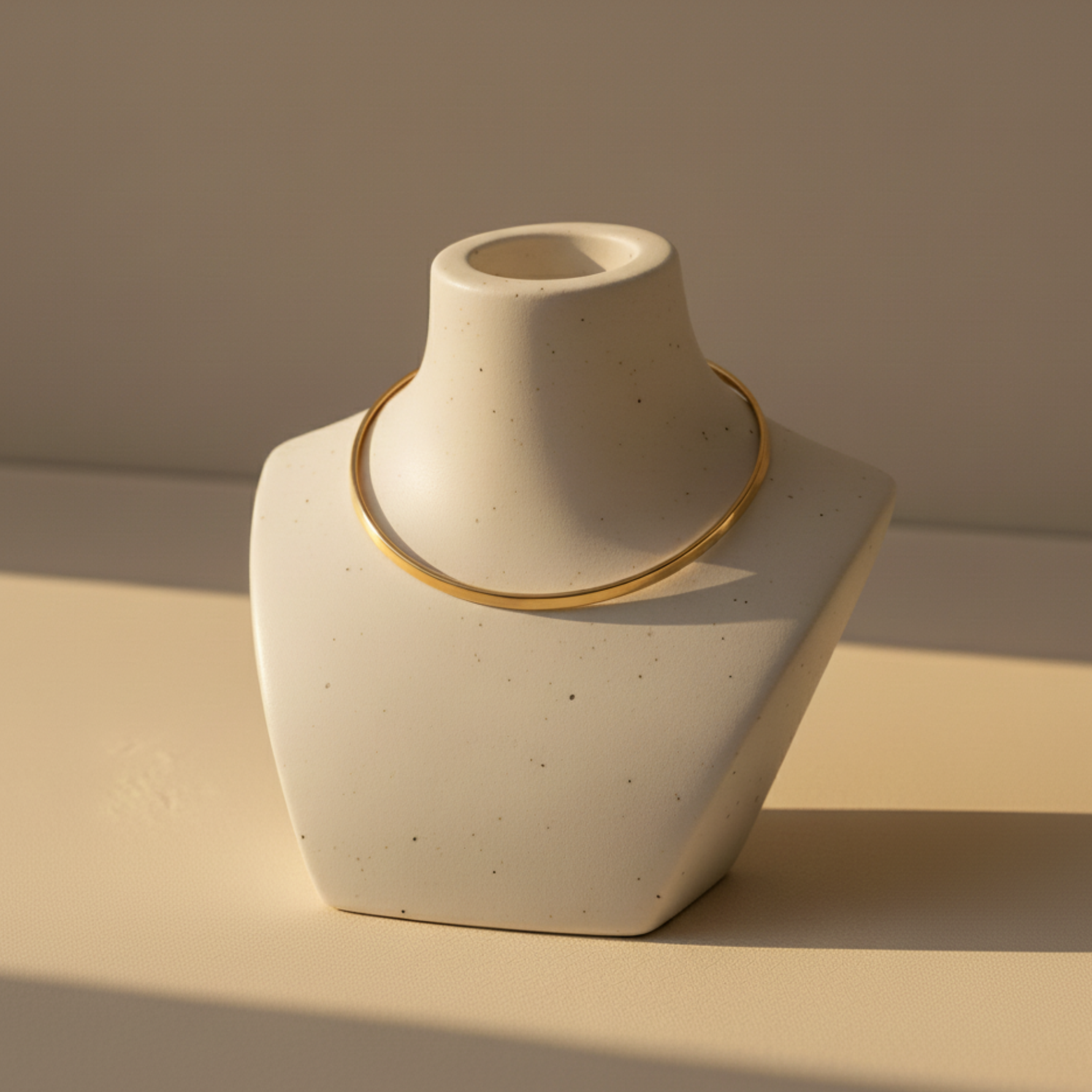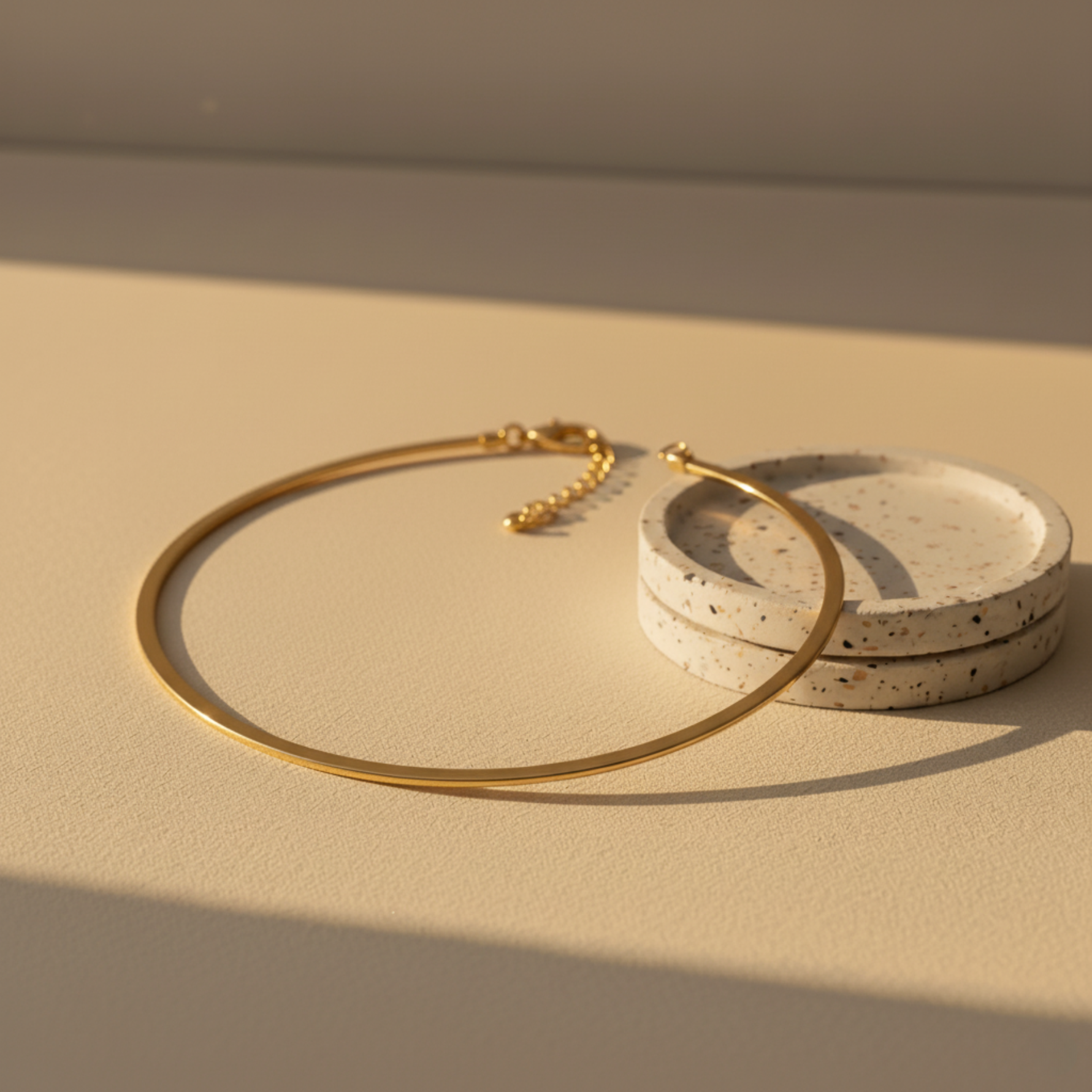 Collier Solara, un ras-de-cou en acier inoxydable doré au design épuré et élégant. Sa ligne lisse et brillante reflète la lumière avec intensité, apportant une touche solaire et sophistiquée à votre style. Résistant et intemporel, il se porte aussi bien seul pour un look minimaliste qu’associé à d’autres colliers pour un effet superposé tendance.